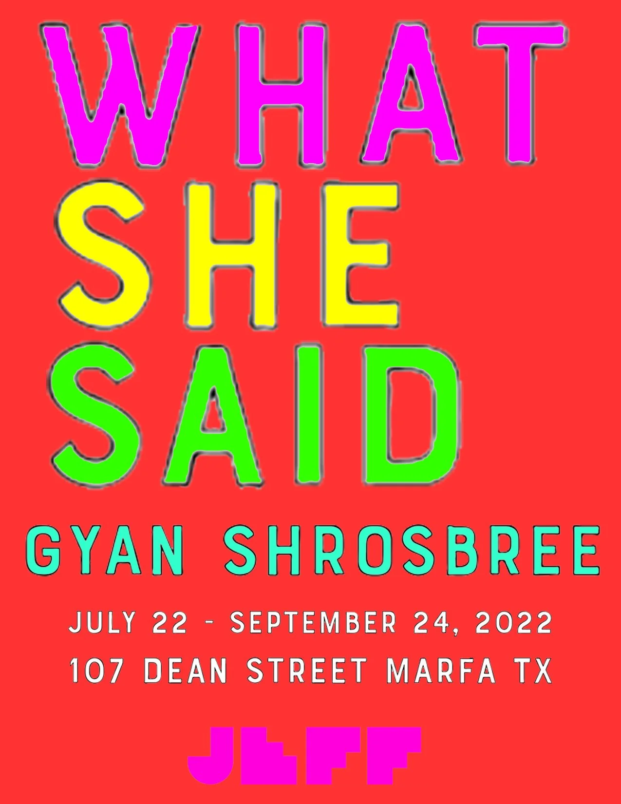 What She Said at Jeff Marfa July 22 - September 24 /